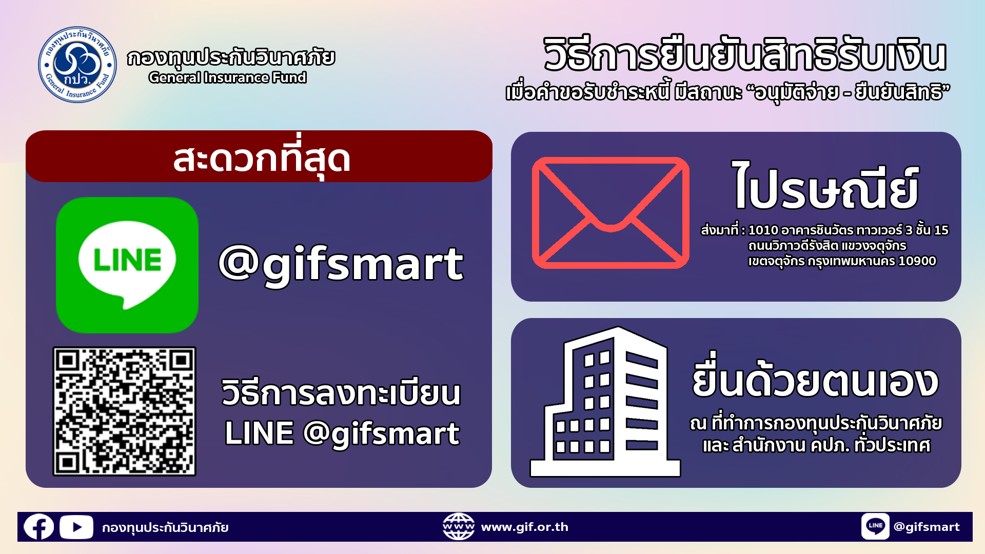 1. ยืนยันสิทธิผ่านแอปพลิเคชันไลน์ "@GIFSMART" (สะดวกที่สุด)