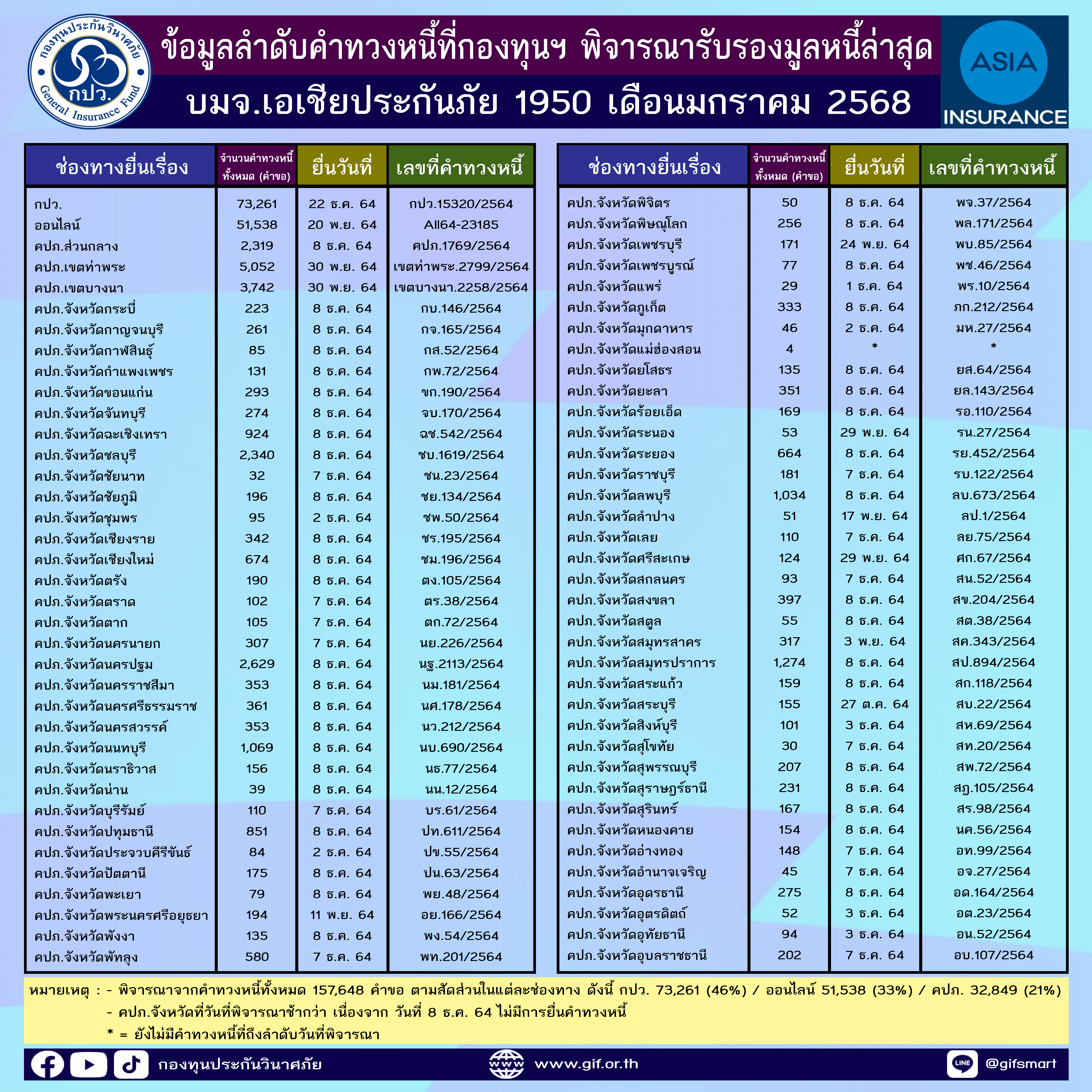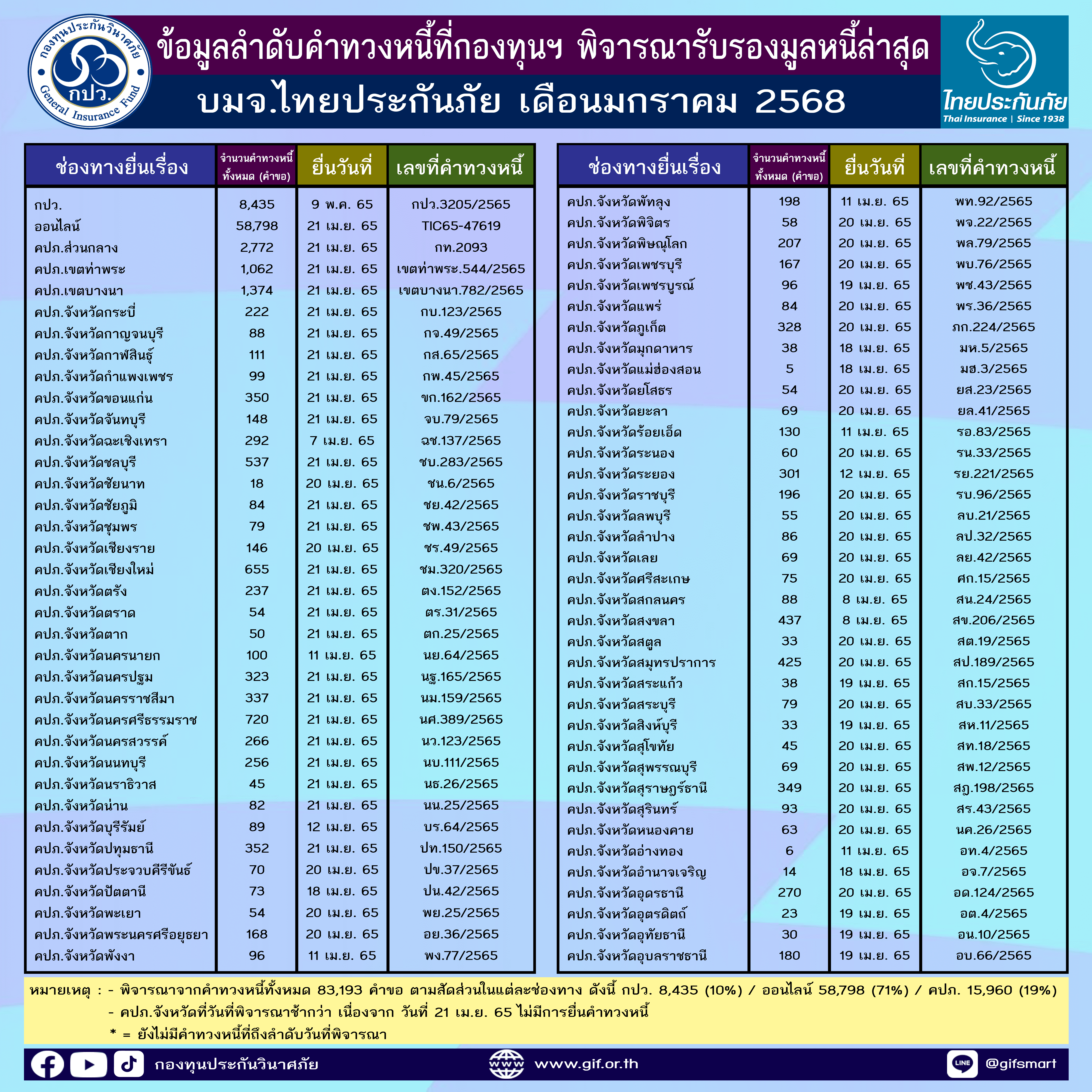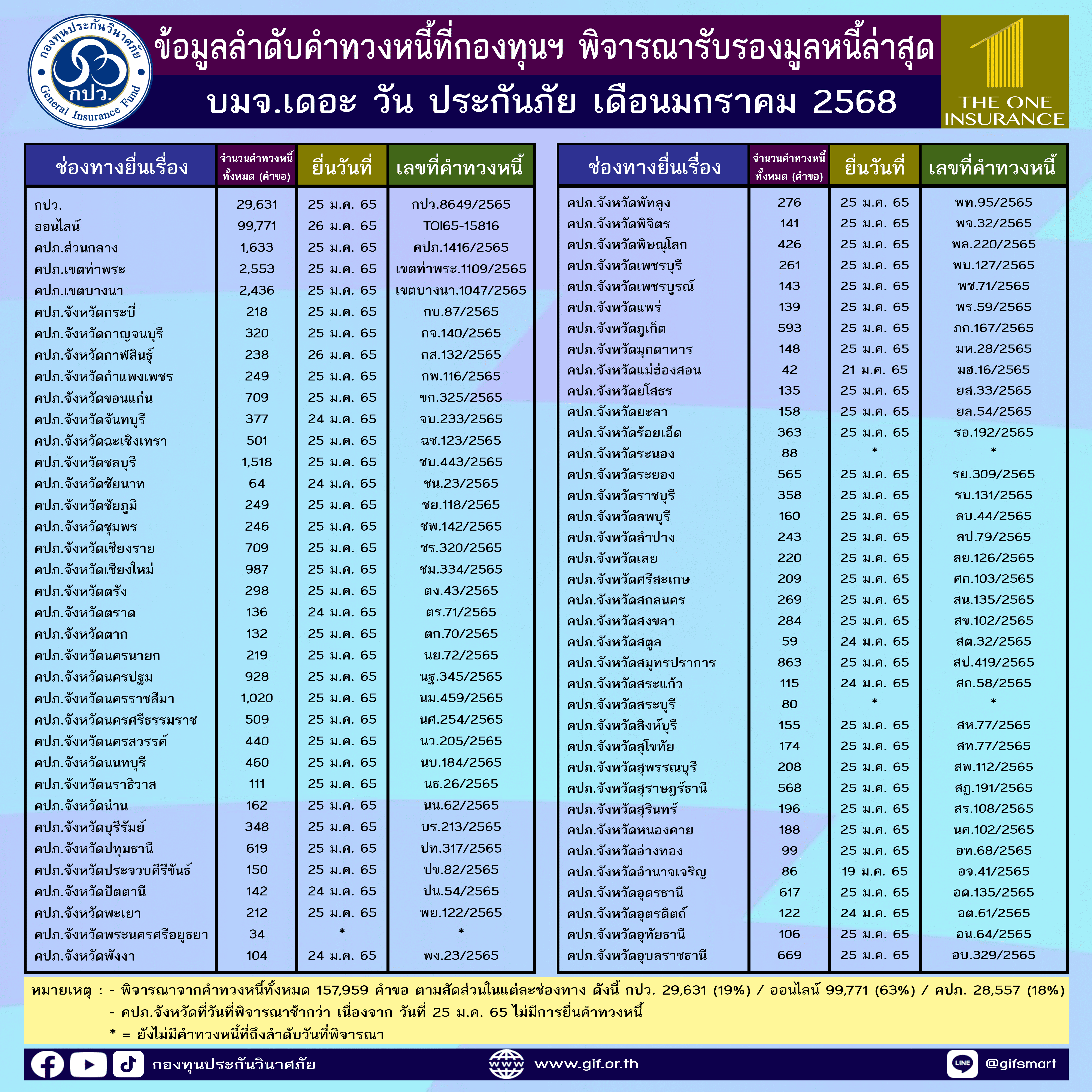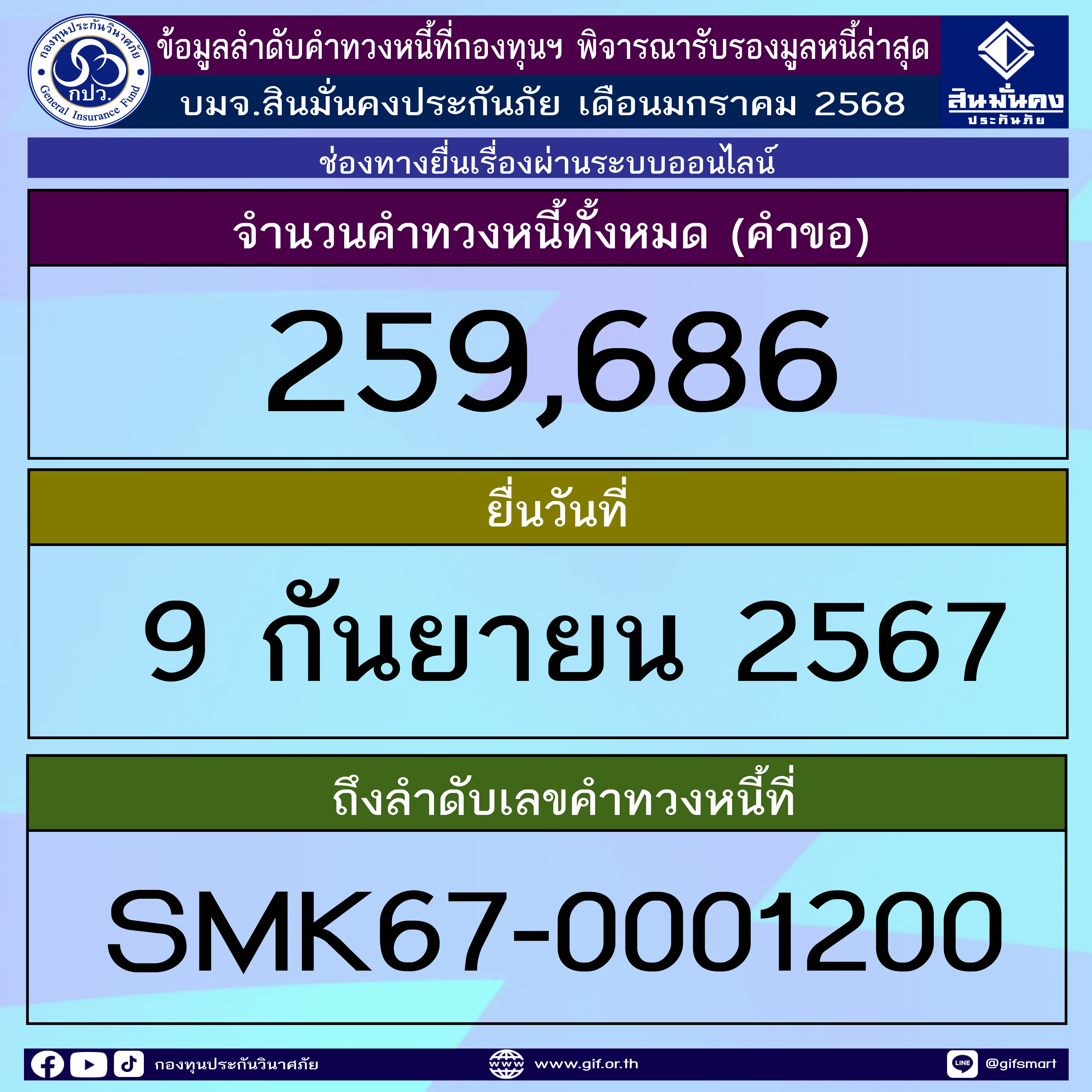 ข้อมูลลำดับคำทวงหนี้ที่กองทุนฯ พิจารณารับรองมูลหนี้ล่าสุด ประจำเดือนมกราคม 2568 ทั้ง 5 บริษัท